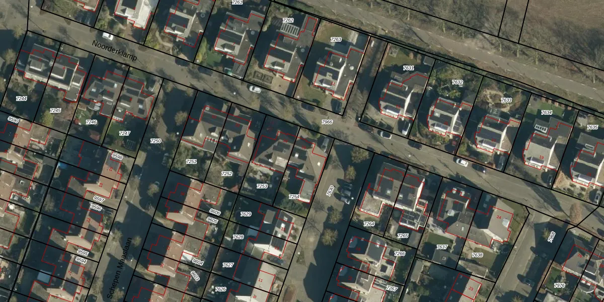 Het perceel waarop Noorderklamp 16 staat heeft een oppervlakte van 336 m². Dit is een groot perceel. De perceeloppervlakte wordt geregistreerd door het Kadaster. Gedetailleerde informatie over de maten van dit perceel kunt u vinden in het rapport Kadastrale kaart met maatvoering van Noorderklamp 16.