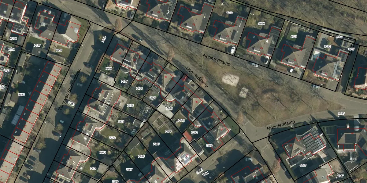 Noorderklamp 34 is gelegen op kadastraal perceel NNN00E7980. Deze kadastrale aanduiding is uniek en wordt gebruikt door het Kadaster om eigendomsrechten en andere zakelijke rechten vast te leggen. Het perceel maakt onderdeel uit van de kadastrale gemeente Nuenen.