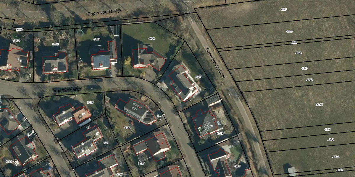 Het perceel waarop Noorderklamp 43 staat heeft een oppervlakte van 702 m². Dit is een groot perceel. De perceeloppervlakte wordt geregistreerd door het Kadaster. Gedetailleerde informatie over de maten van dit perceel kunt u vinden in het rapport Kadastrale kaart met maatvoering van Noorderklamp 43.