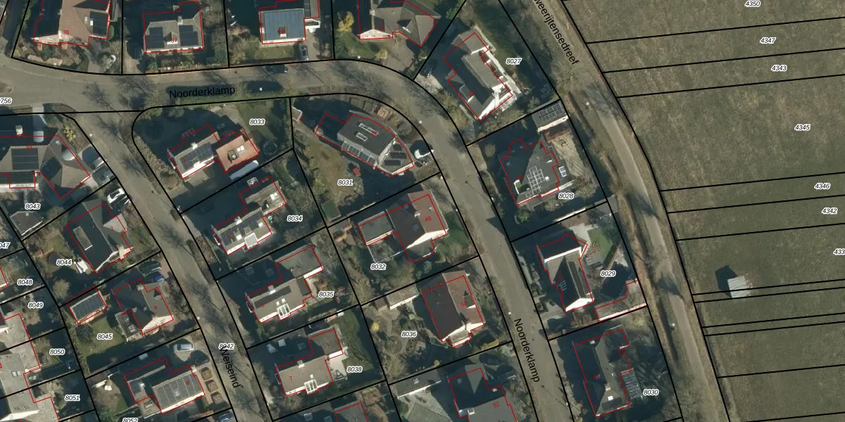 Het perceel waarop Noorderklamp 48 staat heeft een oppervlakte van 634 m². Dit is een groot perceel. De perceeloppervlakte wordt geregistreerd door het Kadaster. Gedetailleerde informatie over de maten van dit perceel kunt u vinden in het rapport Kadastrale kaart met maatvoering van Noorderklamp 48.