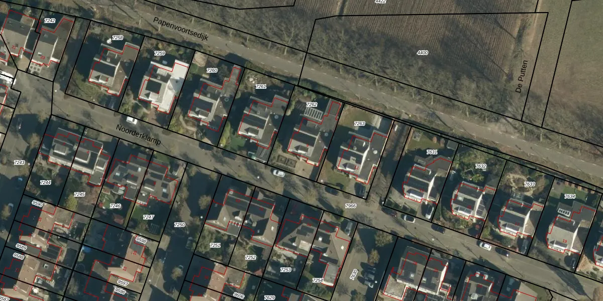 Het perceel waarop Noorderklamp 9 staat heeft een oppervlakte van 490 m². Dit is een groot perceel. De perceeloppervlakte wordt geregistreerd door het Kadaster. Gedetailleerde informatie over de maten van dit perceel kunt u vinden in het rapport Kadastrale kaart met maatvoering van Noorderklamp 9.