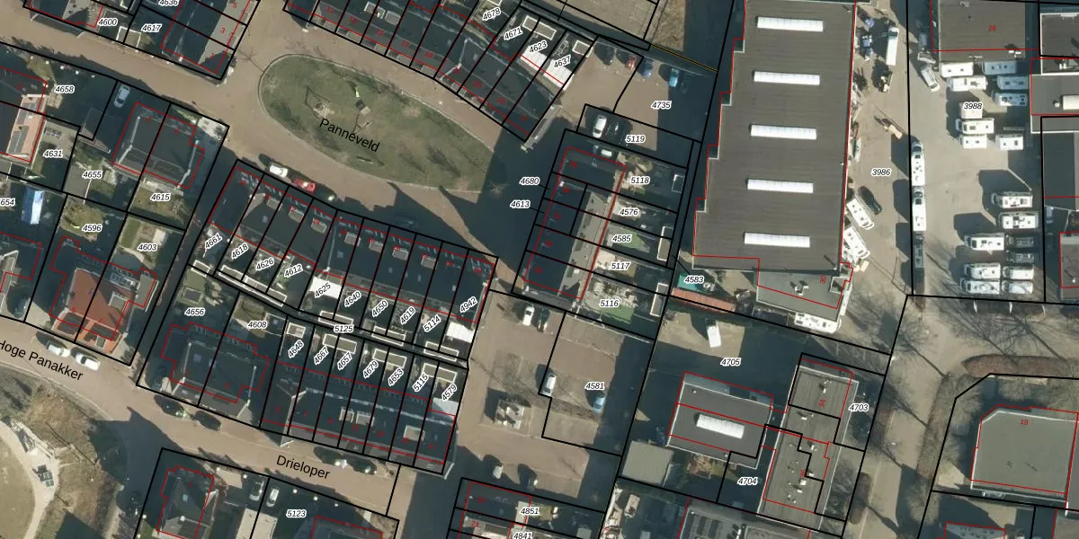 Gebruik de zoekbalk of klik op een perceel voor informatie over de adressen binnen dit perceel.