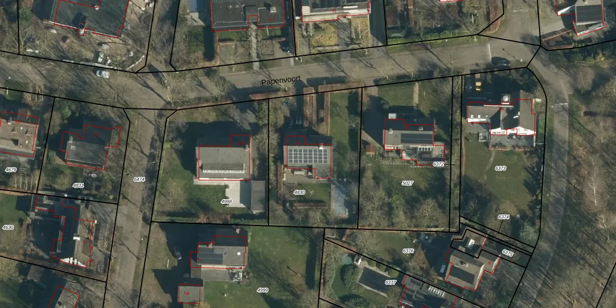 Het perceel waarop Papenvoort 24 staat heeft een oppervlakte van 1287 m². Dit is een zeer groot perceel. De perceeloppervlakte wordt geregistreerd door het Kadaster. Gedetailleerde informatie over de maten van dit perceel kunt u vinden in het rapport Kadastrale kaart met maatvoering van Papenvoort 24.