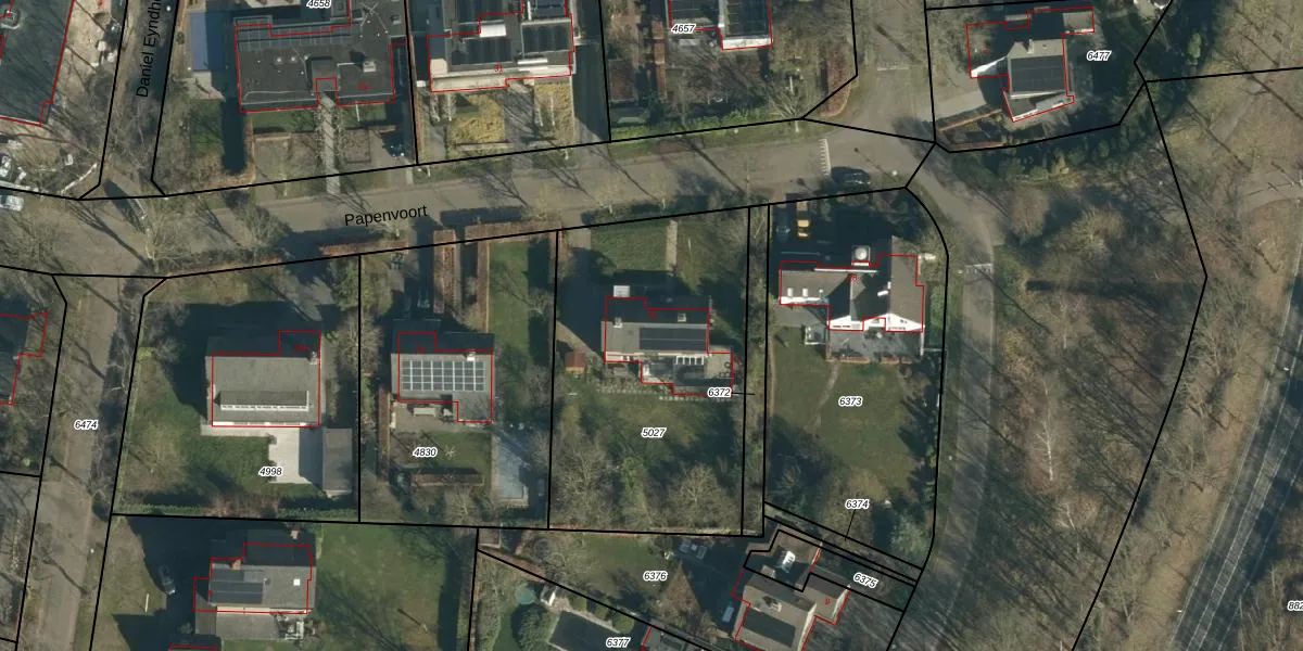 Het perceel waarop Papenvoort 26 staat heeft een oppervlakte van 1427 m². Dit is een zeer groot perceel. De perceeloppervlakte wordt geregistreerd door het Kadaster. Gedetailleerde informatie over de maten van dit perceel kunt u vinden in het rapport Kadastrale kaart met maatvoering van Papenvoort 26.