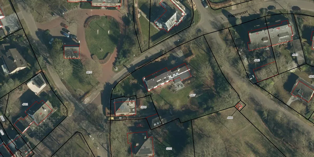 Het perceel waarop Papenvoort 8 staat heeft een oppervlakte van 2495 m². Dit is een zeer groot perceel. De perceeloppervlakte wordt geregistreerd door het Kadaster. Gedetailleerde informatie over de maten van dit perceel kunt u vinden in het rapport Kadastrale kaart met maatvoering van Papenvoort 8.