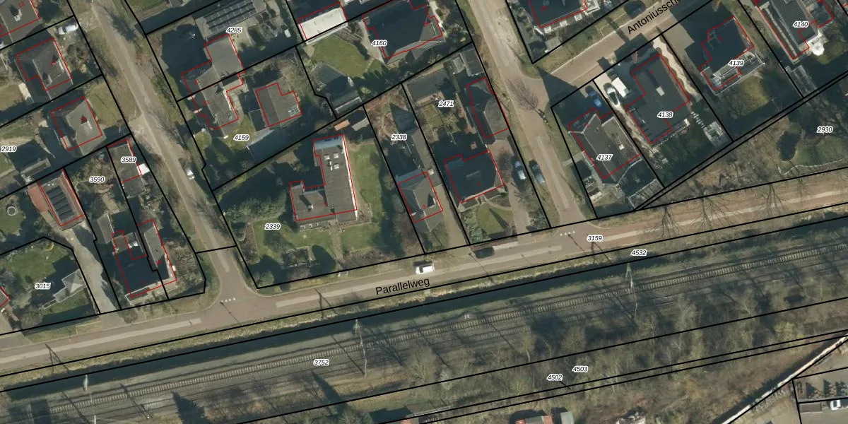 Parallelweg 3 is gelegen op kadastraal perceel NNN00C2338. Deze kadastrale aanduiding is uniek en wordt gebruikt door het Kadaster om eigendomsrechten en andere zakelijke rechten vast te leggen. Het perceel maakt onderdeel uit van de kadastrale gemeente Nuenen.