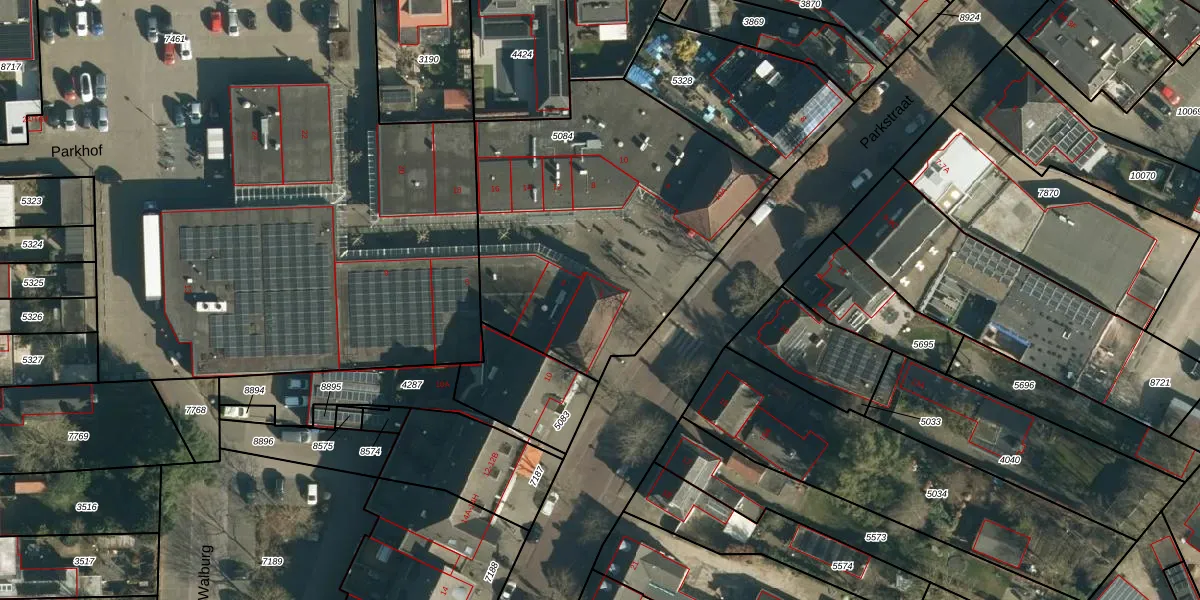 Het perceel waarop Parkhof 1 staat heeft een oppervlakte van 1640 m². Dit is een zeer groot perceel. De perceeloppervlakte wordt geregistreerd door het Kadaster. Gedetailleerde informatie over de maten van dit perceel kunt u vinden in het rapport Kadastrale kaart met maatvoering van Parkhof 1.