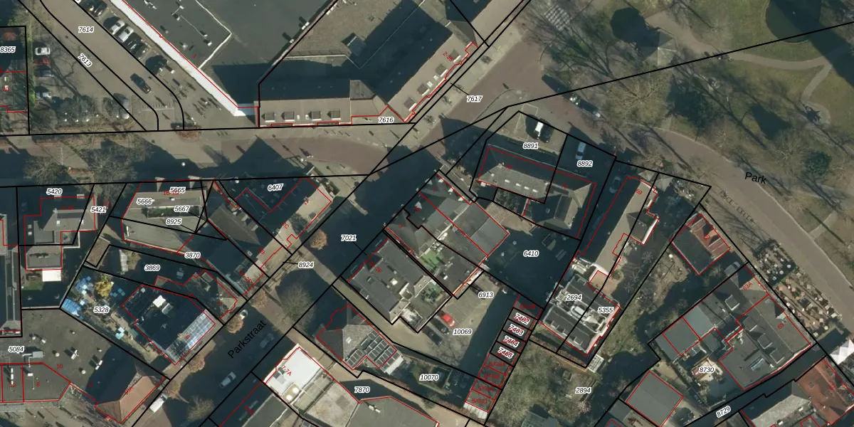 Het perceel waarop Parkstraat 1-A staat heeft een oppervlakte van 580 m². Dit is een groot perceel. De perceeloppervlakte wordt geregistreerd door het Kadaster. Gedetailleerde informatie over de maten van dit perceel kunt u vinden in het rapport Kadastrale kaart met maatvoering van Parkstraat 1-A.