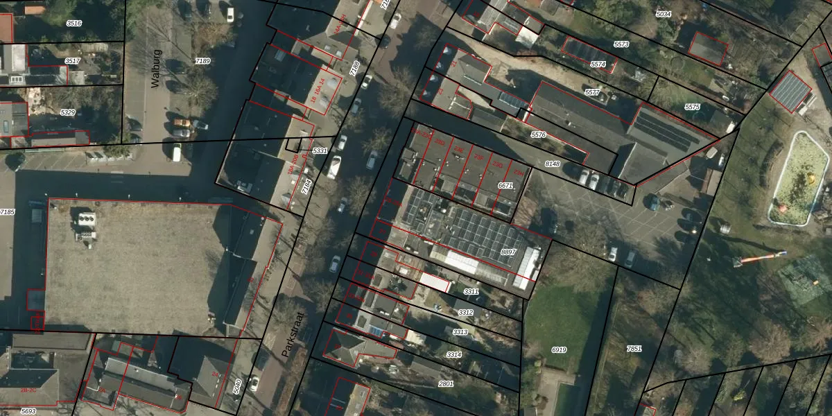 Parkstraat 25-A is gelegen op kadastraal perceel NNN00E8897. Deze kadastrale aanduiding is uniek en wordt gebruikt door het Kadaster om eigendomsrechten en andere zakelijke rechten vast te leggen. Het perceel maakt onderdeel uit van de kadastrale gemeente Nuenen.