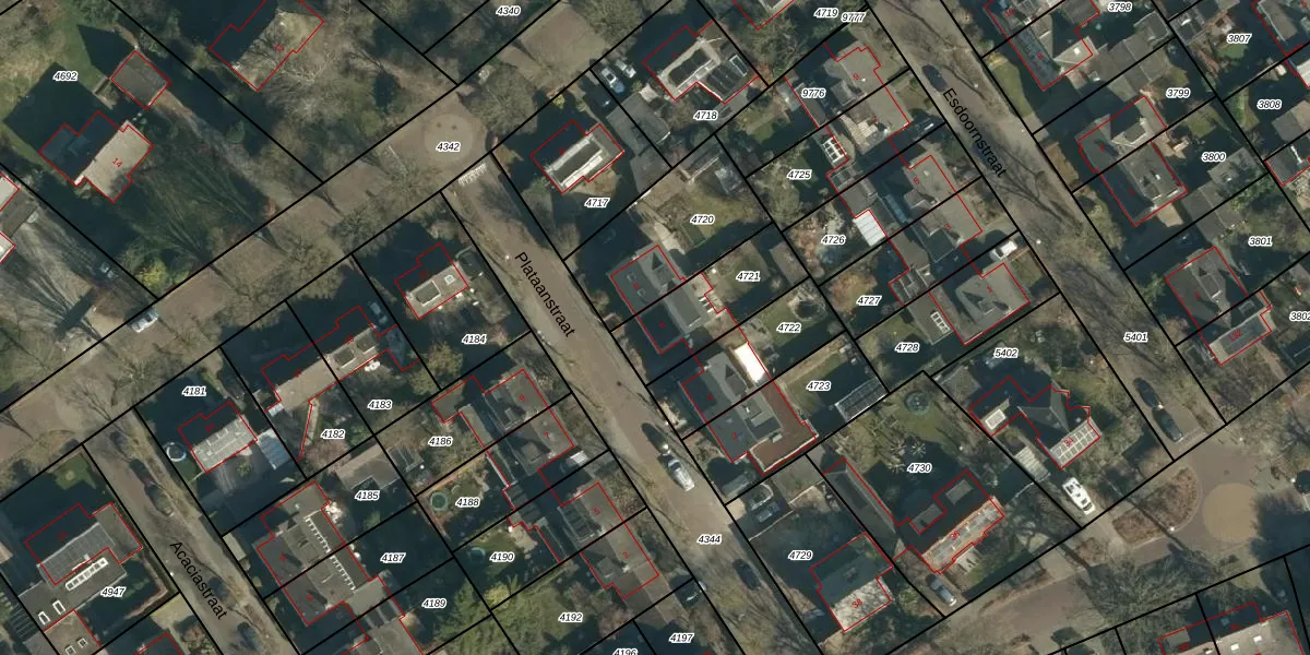 Plataanstraat 6 is gelegen op kadastraal perceel NNN00E4721. Deze kadastrale aanduiding is uniek en wordt gebruikt door het Kadaster om eigendomsrechten en andere zakelijke rechten vast te leggen. Het perceel maakt onderdeel uit van de kadastrale gemeente Nuenen.