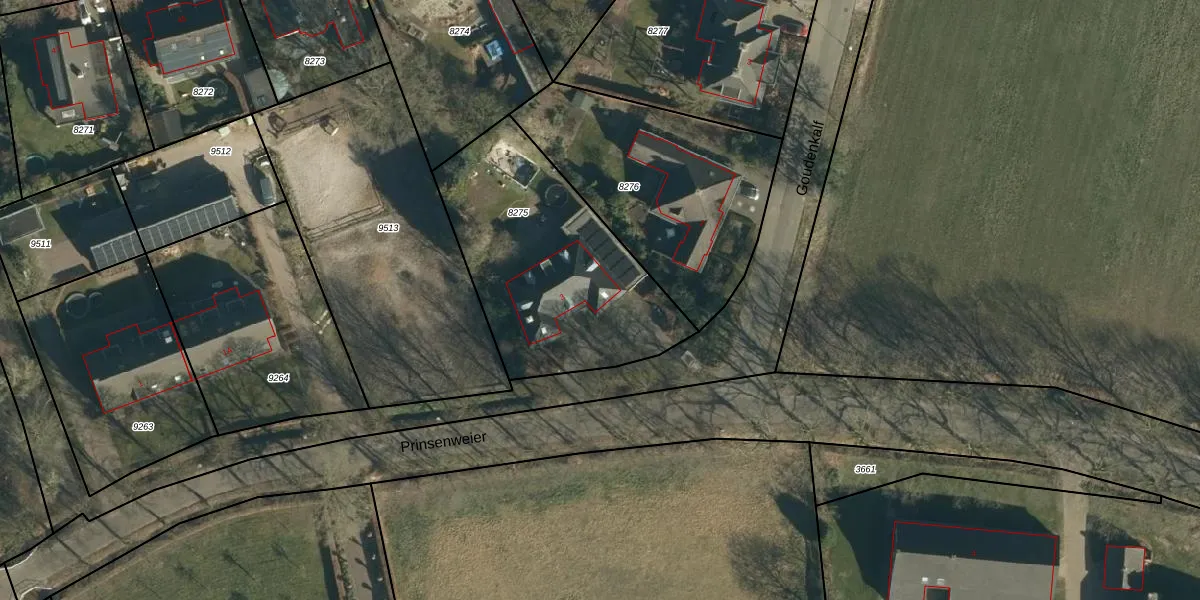 Het perceel waarop Prinsenweier 3 staat heeft een oppervlakte van 1032 m². Dit is een zeer groot perceel. De perceeloppervlakte wordt geregistreerd door het Kadaster. Gedetailleerde informatie over de maten van dit perceel kunt u vinden in het rapport Kadastrale kaart met maatvoering van Prinsenweier 3.