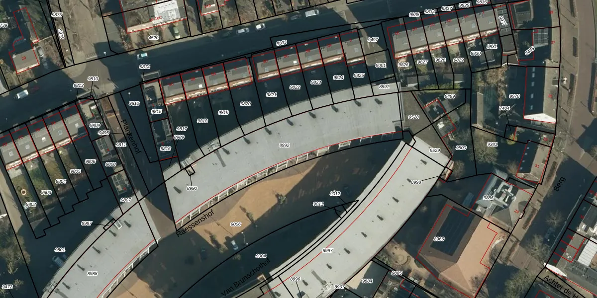 Het perceel waarop Raessenshof 21 staat heeft een oppervlakte van 1309 m². Dit is een zeer groot perceel. De perceeloppervlakte wordt geregistreerd door het Kadaster. Gedetailleerde informatie over de maten van dit perceel kunt u vinden in het rapport Kadastrale kaart met maatvoering van Raessenshof 21.