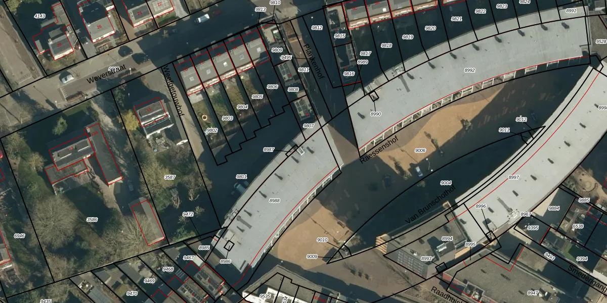 Het perceel waarop Raessenshof 91 staat heeft een oppervlakte van 864 m². Dit is een groot perceel. De perceeloppervlakte wordt geregistreerd door het Kadaster. Gedetailleerde informatie over de maten van dit perceel kunt u vinden in het rapport Kadastrale kaart met maatvoering van Raessenshof 91.