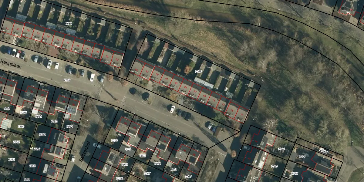 Het perceel waarop Raupplaan 65 staat heeft een oppervlakte van 1926 m². Dit is een zeer groot perceel. De perceeloppervlakte wordt geregistreerd door het Kadaster. Gedetailleerde informatie over de maten van dit perceel kunt u vinden in het rapport Kadastrale kaart met maatvoering van Raupplaan 65.