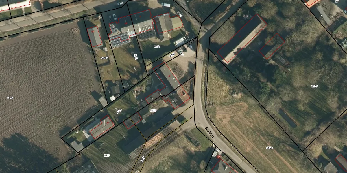 Het perceel waarop Rullen 7-A staat heeft een oppervlakte van 1300 m². Dit is een zeer groot perceel. De perceeloppervlakte wordt geregistreerd door het Kadaster. Gedetailleerde informatie over de maten van dit perceel kunt u vinden in het rapport Kadastrale kaart met maatvoering van Rullen 7-A.