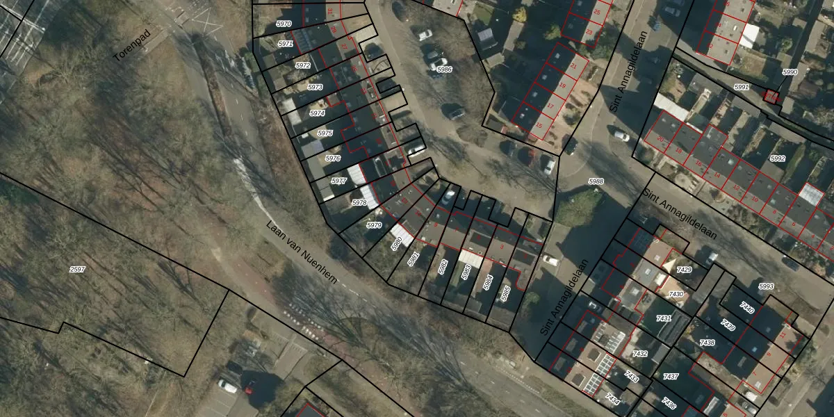 Het adres ligt op het perceel NNN00-E-5980, dat zich in de kadastrale gemeente Nuenen bevindt. Het perceel is kleiner dan gemiddeld in Nuenen. Het perceel is 150 m² groot, terwijl het gemiddelde ligt op 2262,6 m². De grootste perceeloppervlakte in de kadastrale gemeente is 27,9 ha. De kleinste oppervlakte bedraagt 0 m². Op het perceel bevinden zich geen andere adressen. In de Basisregistratie Kadaster (BRK) werden de grenzen van het perceel geregistreerd op 14-09-2009.