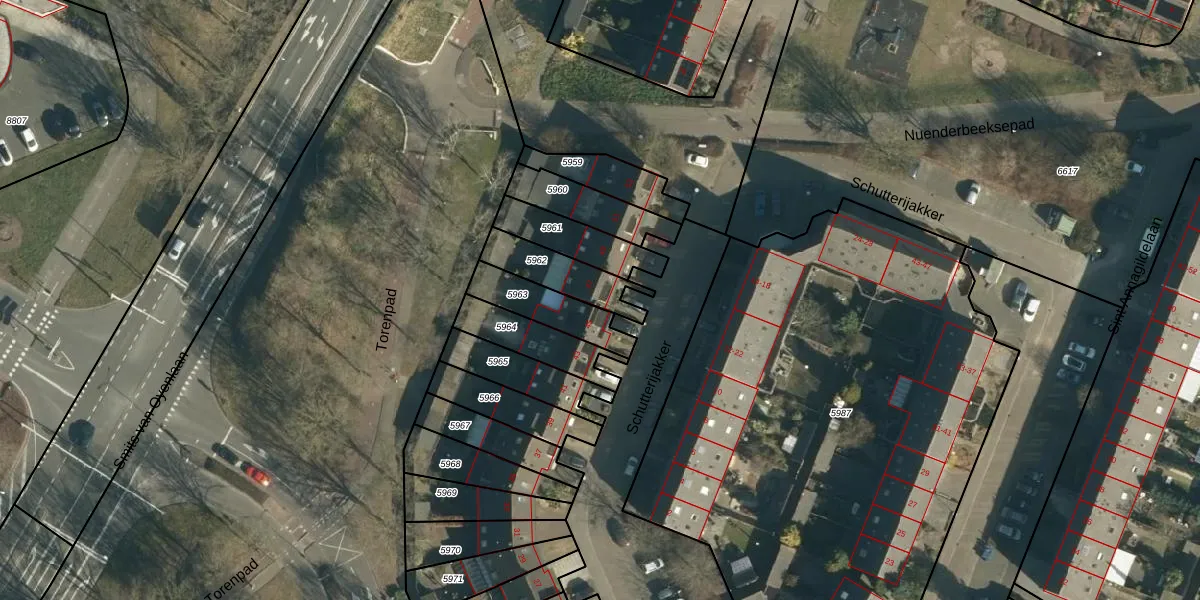 Schutterijakker 47 is gelegen op kadastraal perceel NNN00E5962. Deze kadastrale aanduiding is uniek en wordt gebruikt door het Kadaster om eigendomsrechten en andere zakelijke rechten vast te leggen. Het perceel maakt onderdeel uit van de kadastrale gemeente Nuenen.