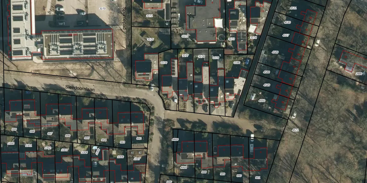 Sleedoornlaan 53 is gelegen op kadastraal perceel NNN00F3177. Deze kadastrale aanduiding is uniek en wordt gebruikt door het Kadaster om eigendomsrechten en andere zakelijke rechten vast te leggen. Het perceel maakt onderdeel uit van de kadastrale gemeente Nuenen.