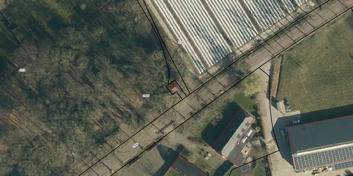 Het perceel waarop Soeterbeek 3-Traf staat heeft een oppervlakte van 53 m². Dit is een klein perceel. De perceeloppervlakte wordt geregistreerd door het Kadaster. Gedetailleerde informatie over de maten van dit perceel kunt u vinden in het rapport Kadastrale kaart met maatvoering van Soeterbeek 3-Traf.