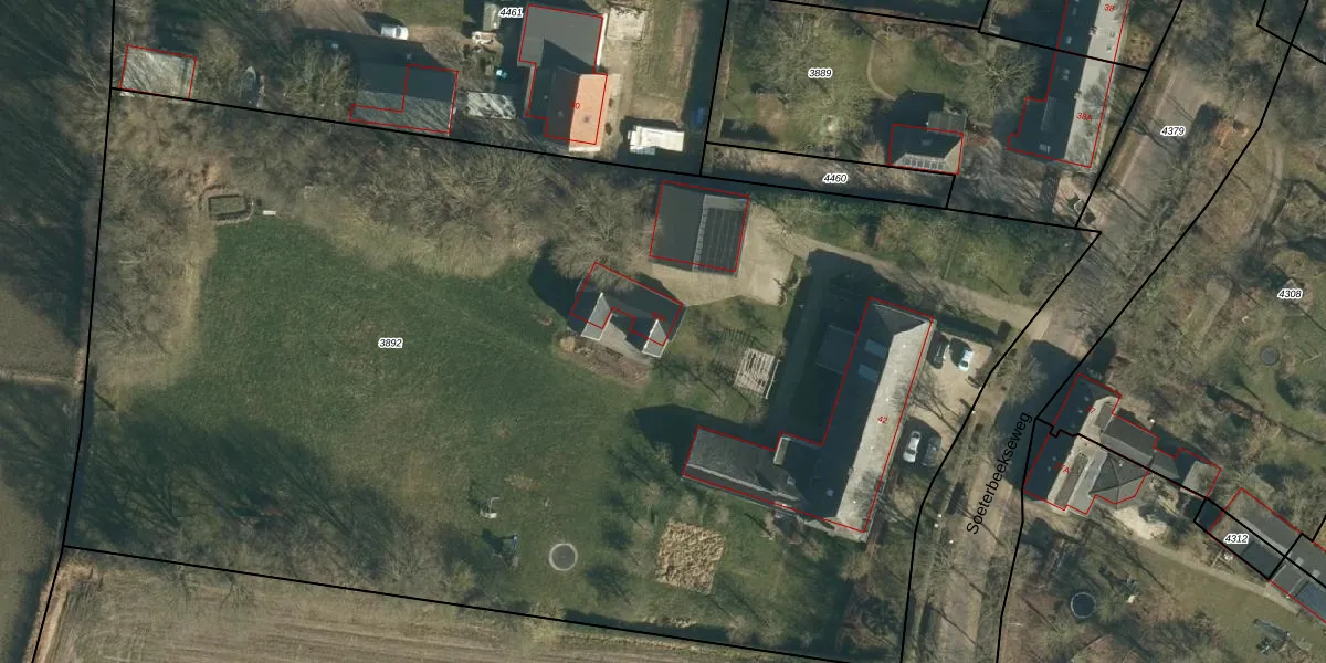 Het perceel waarop Soeterbeekseweg 42-A staat heeft een oppervlakte van 9301 m². Dit is een zeer groot perceel. De perceeloppervlakte wordt geregistreerd door het Kadaster. Gedetailleerde informatie over de maten van dit perceel kunt u vinden in het rapport Kadastrale kaart met maatvoering van Soeterbeekseweg 42-A.
