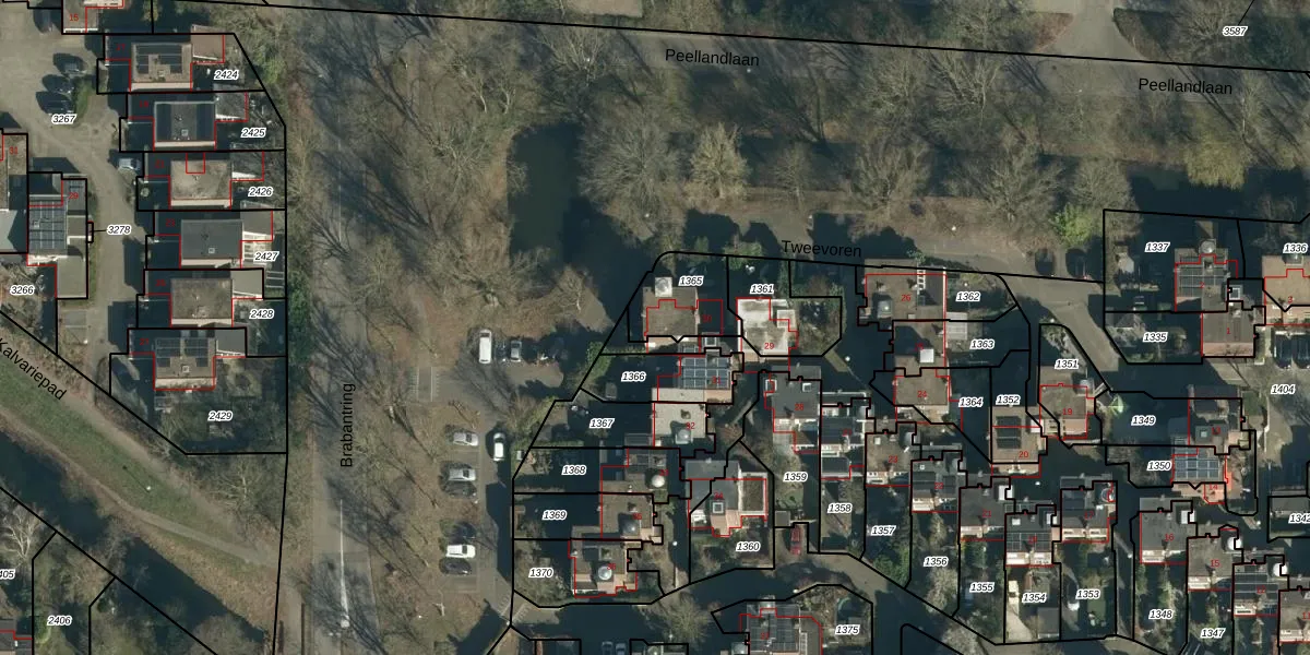 Tweevoren 30 is gelegen op kadastraal perceel NNN00F1365. Deze kadastrale aanduiding is uniek en wordt gebruikt door het Kadaster om eigendomsrechten en andere zakelijke rechten vast te leggen. Het perceel maakt onderdeel uit van de kadastrale gemeente Nuenen.