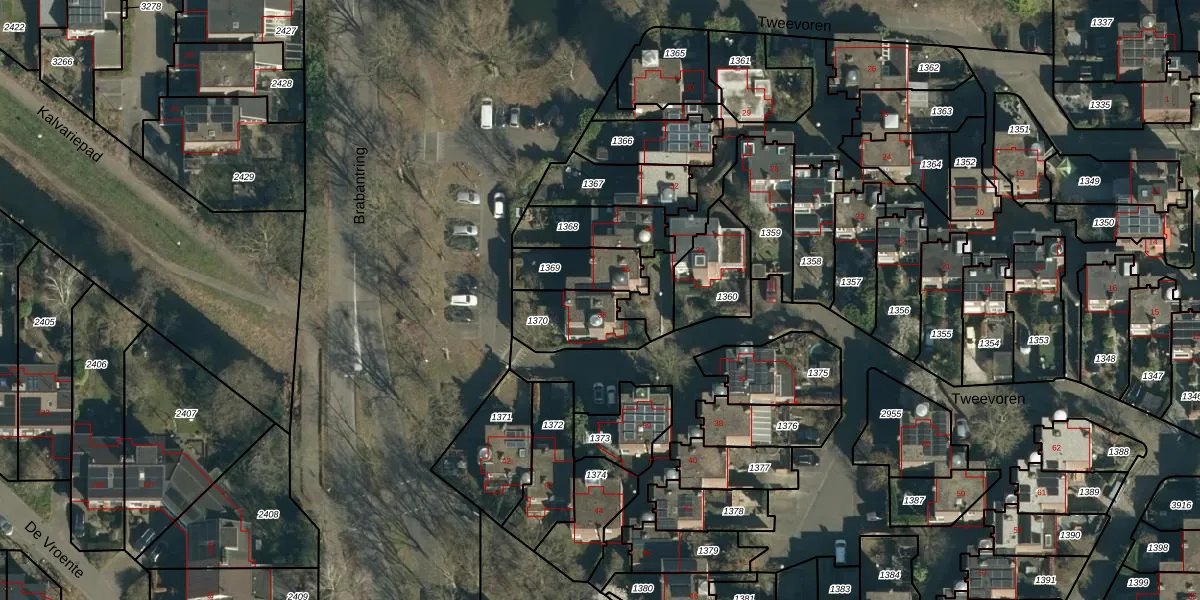 Tweevoren 36 is gelegen op kadastraal perceel NNN00F1370. Deze kadastrale aanduiding is uniek en wordt gebruikt door het Kadaster om eigendomsrechten en andere zakelijke rechten vast te leggen. Het perceel maakt onderdeel uit van de kadastrale gemeente Nuenen.