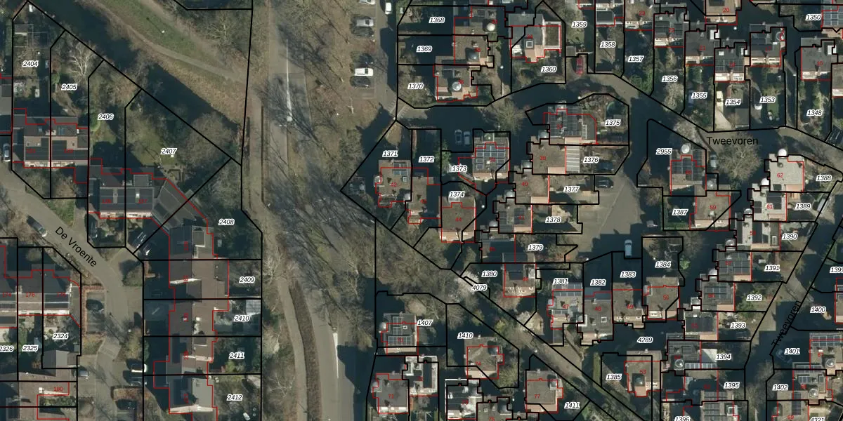 Het perceel waarop Tweevoren 43 staat heeft een oppervlakte van 200 m². Dit is een middelgroot perceel. De perceeloppervlakte wordt geregistreerd door het Kadaster. Gedetailleerde informatie over de maten van dit perceel kunt u vinden in het rapport Kadastrale kaart met maatvoering van Tweevoren 43.