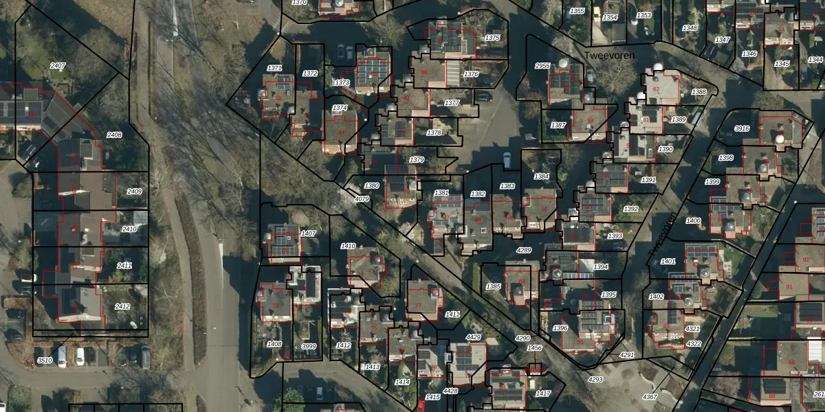 Het perceel waarop Tweevoren 46 staat heeft een oppervlakte van 175 m². Dit is een middelgroot perceel. De perceeloppervlakte wordt geregistreerd door het Kadaster. Gedetailleerde informatie over de maten van dit perceel kunt u vinden in het rapport Kadastrale kaart met maatvoering van Tweevoren 46.