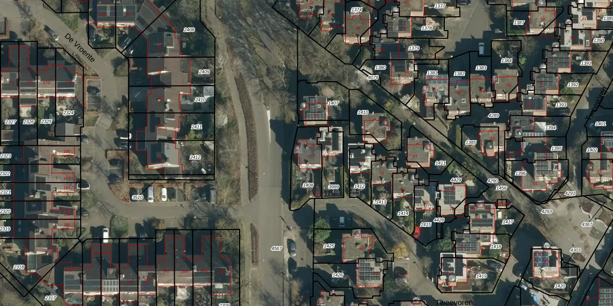 Het perceel waarop Tweevoren 71 staat heeft een oppervlakte van 236 m². Dit is een middelgroot perceel. De perceeloppervlakte wordt geregistreerd door het Kadaster. Gedetailleerde informatie over de maten van dit perceel kunt u vinden in het rapport Kadastrale kaart met maatvoering van Tweevoren 71.