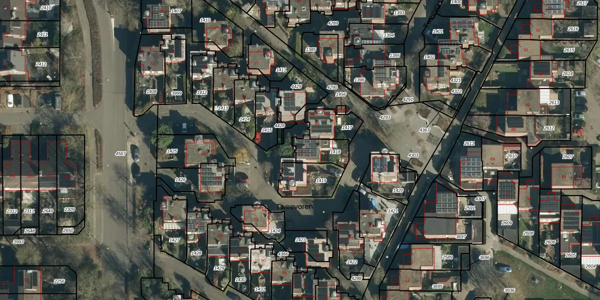 Tweevoren 81 is gelegen op kadastraal perceel NNN00F1418. Deze kadastrale aanduiding is uniek en wordt gebruikt door het Kadaster om eigendomsrechten en andere zakelijke rechten vast te leggen. Het perceel maakt onderdeel uit van de kadastrale gemeente Nuenen.