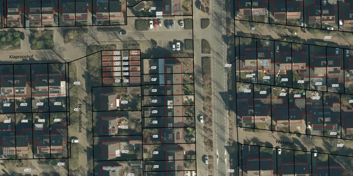 Gebruik de zoekbalk of klik op een perceel voor informatie over de adressen binnen dit perceel.