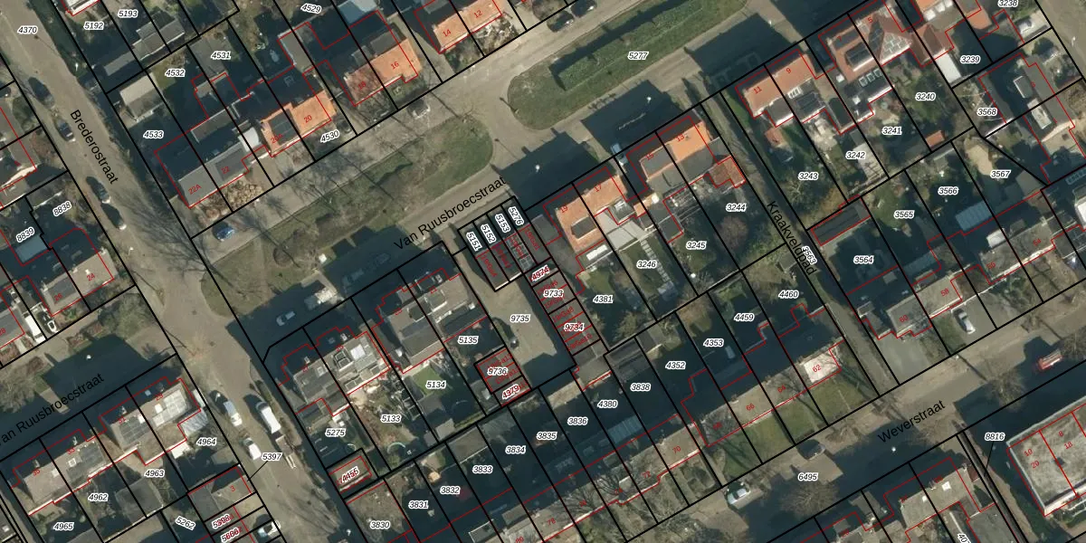 Van Ruusbroecstraat 19-Ga5 is gelegen op kadastraal perceel NNN00E4974. Deze kadastrale aanduiding is uniek en wordt gebruikt door het Kadaster om eigendomsrechten en andere zakelijke rechten vast te leggen. Het perceel maakt onderdeel uit van de kadastrale gemeente Nuenen.