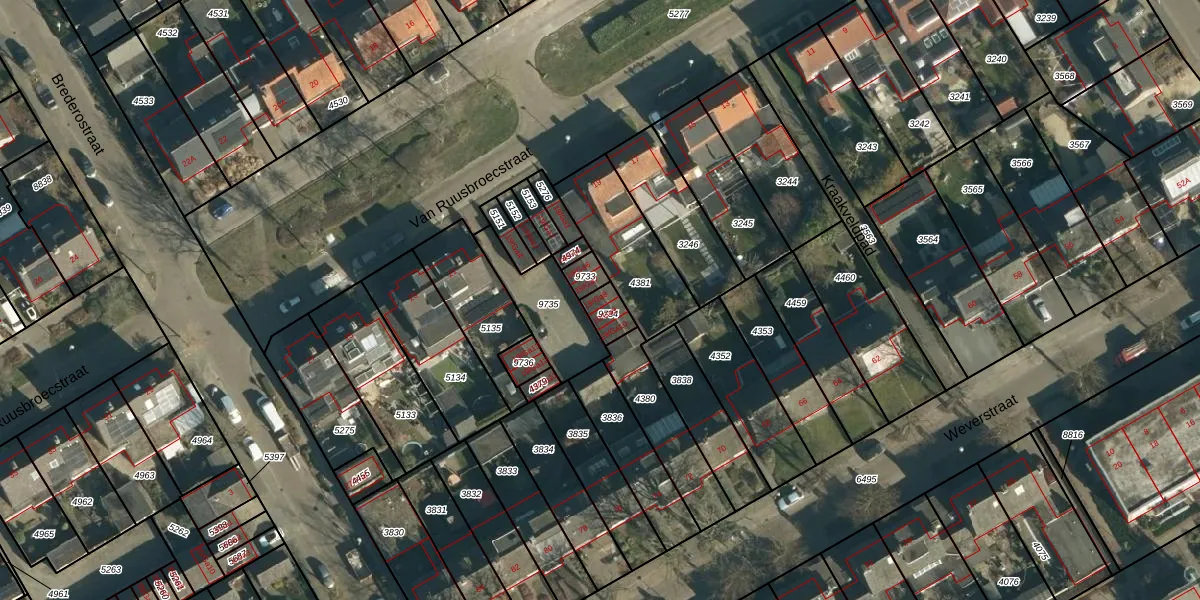 Van Ruusbroecstraat 19-Ga8 is gelegen op kadastraal perceel NNN00E9734. Deze kadastrale aanduiding is uniek en wordt gebruikt door het Kadaster om eigendomsrechten en andere zakelijke rechten vast te leggen. Het perceel maakt onderdeel uit van de kadastrale gemeente Nuenen.