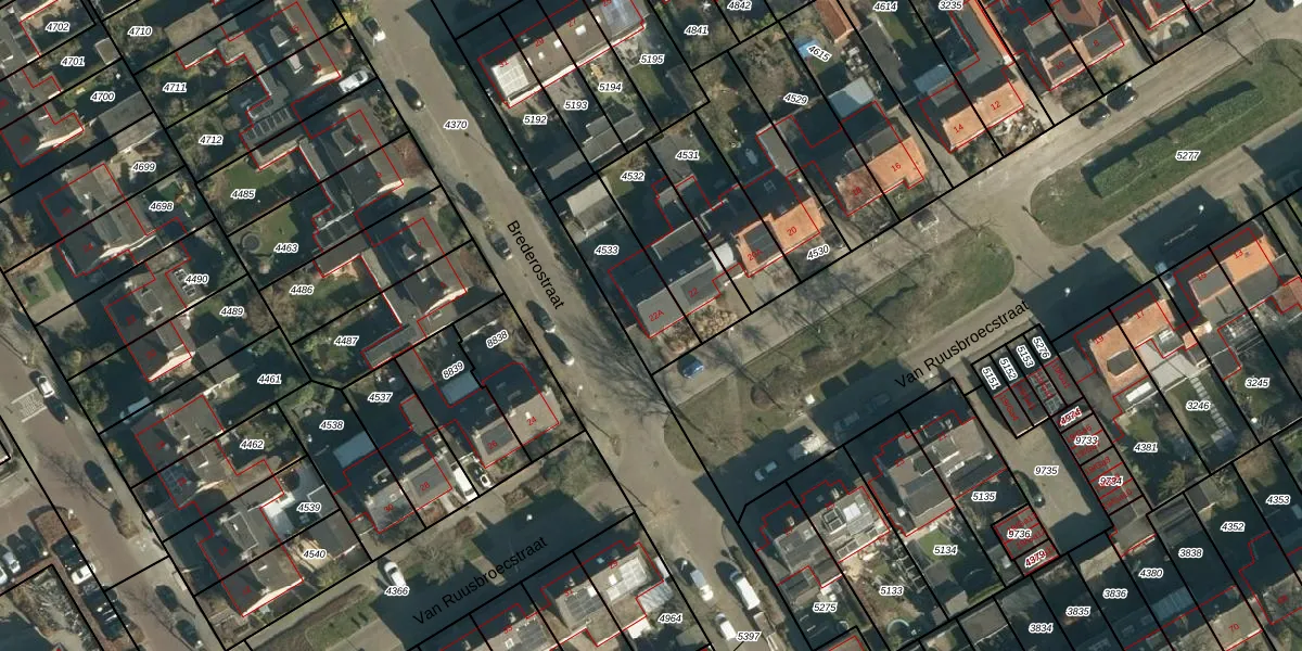 Van Ruusbroecstraat 22-A is gelegen op kadastraal perceel NNN00E4533. Deze kadastrale aanduiding is uniek en wordt gebruikt door het Kadaster om eigendomsrechten en andere zakelijke rechten vast te leggen. Het perceel maakt onderdeel uit van de kadastrale gemeente Nuenen.