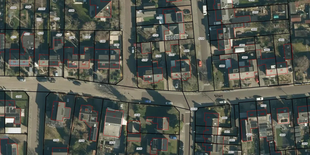 Het perceel waarop Voirt 38 staat heeft een oppervlakte van 289 m². Dit is een middelgroot perceel. De perceeloppervlakte wordt geregistreerd door het Kadaster. Gedetailleerde informatie over de maten van dit perceel kunt u vinden in het rapport Kadastrale kaart met maatvoering van Voirt 38.