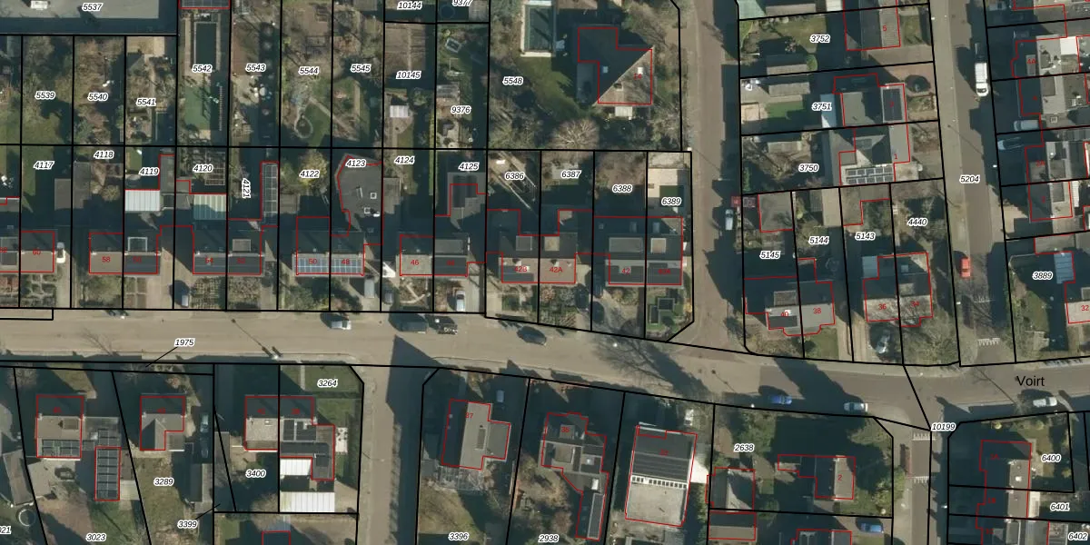 Het perceel waarop Voirt 42-A staat heeft een oppervlakte van 316 m². Dit is een groot perceel. De perceeloppervlakte wordt geregistreerd door het Kadaster. Gedetailleerde informatie over de maten van dit perceel kunt u vinden in het rapport Kadastrale kaart met maatvoering van Voirt 42-A.
