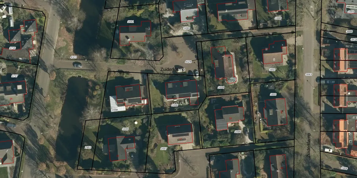 Het perceel waarop Zuiderklamp 11 staat heeft een oppervlakte van 642 m². Dit is een groot perceel. De perceeloppervlakte wordt geregistreerd door het Kadaster. Gedetailleerde informatie over de maten van dit perceel kunt u vinden in het rapport Kadastrale kaart met maatvoering van Zuiderklamp 11.