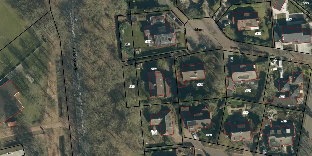 Het perceel waarop Zuiderklamp 20 staat heeft een oppervlakte van 715 m². Dit is een groot perceel. De perceeloppervlakte wordt geregistreerd door het Kadaster. Gedetailleerde informatie over de maten van dit perceel kunt u vinden in het rapport Kadastrale kaart met maatvoering van Zuiderklamp 20.