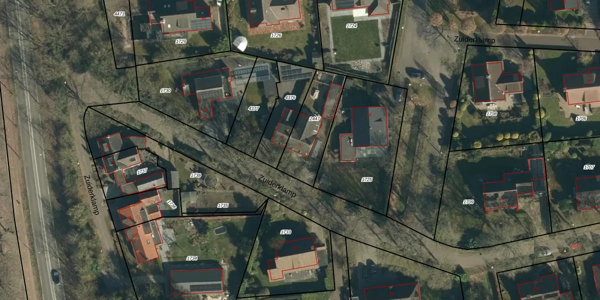 Zuiderklamp 76 is gelegen op kadastraal perceel NNN00F2447. Deze kadastrale aanduiding is uniek en wordt gebruikt door het Kadaster om eigendomsrechten en andere zakelijke rechten vast te leggen. Het perceel maakt onderdeel uit van de kadastrale gemeente Nuenen.