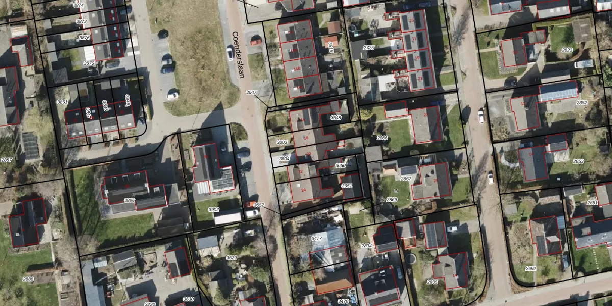 Het perceel waarop Coenderslaan 20 staat heeft een oppervlakte van 164 m². Dit is een middelgroot perceel. De perceeloppervlakte wordt geregistreerd door het Kadaster. Gedetailleerde informatie over de maten van dit perceel kunt u vinden in het rapport Kadastrale kaart met maatvoering van Coenderslaan 20.