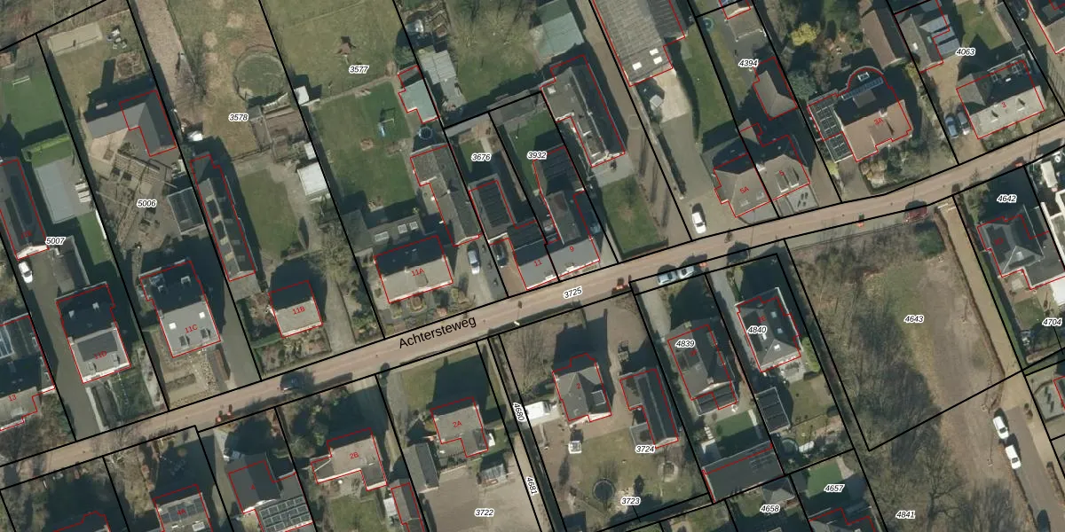 Gebruik de zoekbalk of klik op een perceel voor informatie over de adressen binnen dit perceel.