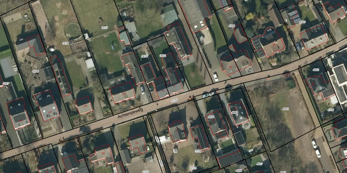 Het perceel waarop Achtersteweg 9 staat heeft een oppervlakte van 377 m². Dit is een groot perceel. De perceeloppervlakte wordt geregistreerd door het Kadaster. Gedetailleerde informatie over de maten van dit perceel kunt u vinden in het rapport Kadastrale kaart met maatvoering van Achtersteweg 9.