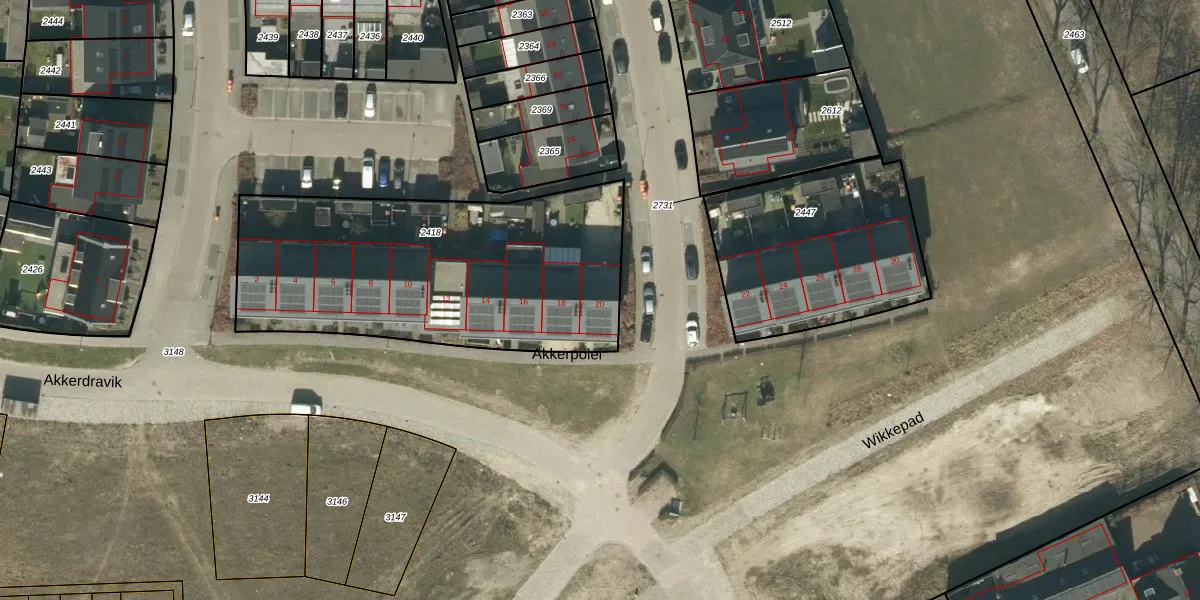Akkerpolei 20 is gelegen op kadastraal perceel NLD03E2418. Deze kadastrale aanduiding is uniek en wordt gebruikt door het Kadaster om eigendomsrechten en andere zakelijke rechten vast te leggen. Het perceel maakt onderdeel uit van de kadastrale gemeente Nuland.