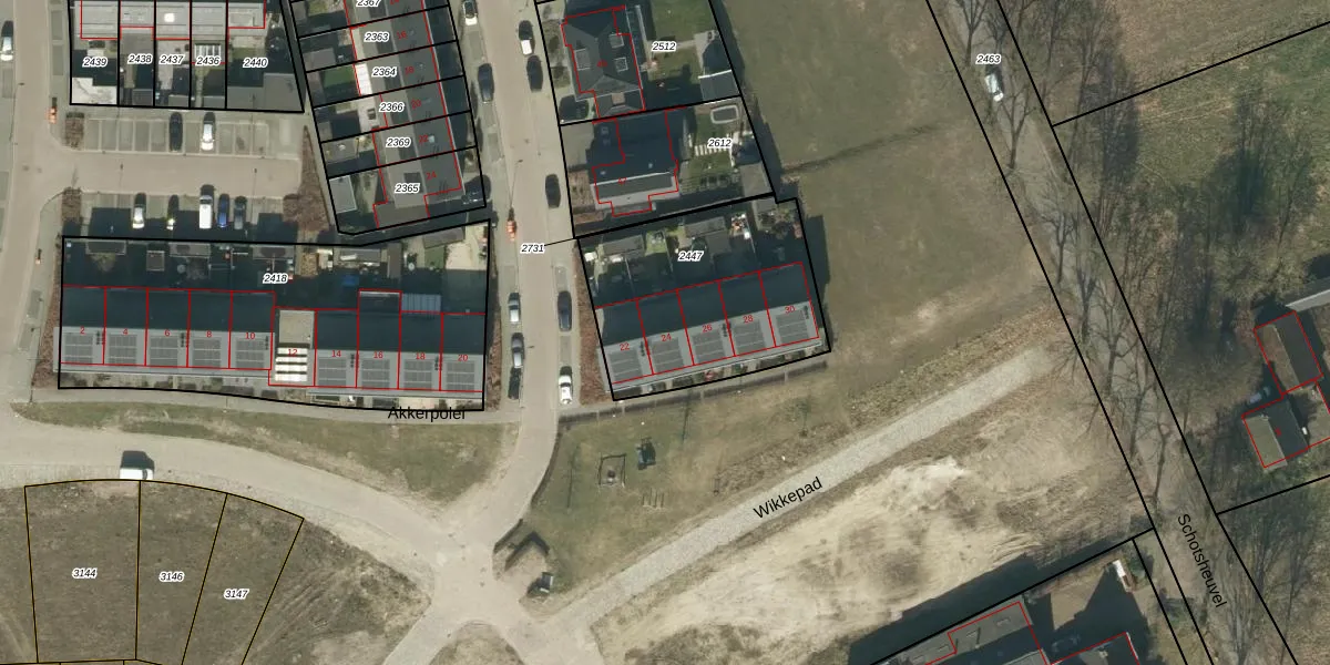 Akkerpolei 24 is gelegen op kadastraal perceel NLD03E2447. Deze kadastrale aanduiding is uniek en wordt gebruikt door het Kadaster om eigendomsrechten en andere zakelijke rechten vast te leggen. Het perceel maakt onderdeel uit van de kadastrale gemeente Nuland.