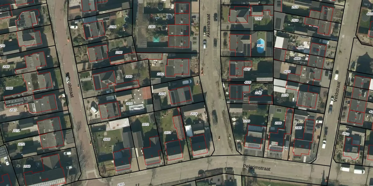 Gebruik de zoekbalk of klik op een perceel voor informatie over de adressen binnen dit perceel.