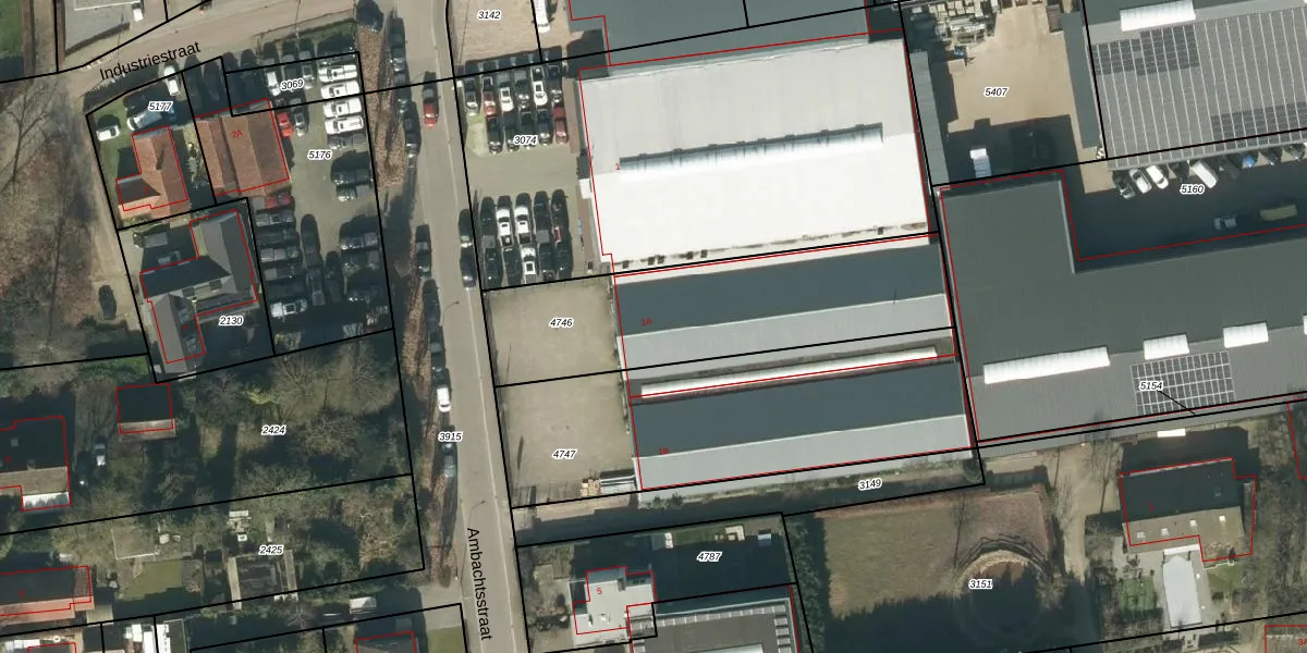 Het perceel waarop Ambachtsstraat 1-A staat heeft een oppervlakte van 1046 m². Dit is een zeer groot perceel. De perceeloppervlakte wordt geregistreerd door het Kadaster. Gedetailleerde informatie over de maten van dit perceel kunt u vinden in het rapport Kadastrale kaart met maatvoering van Ambachtsstraat 1-A.