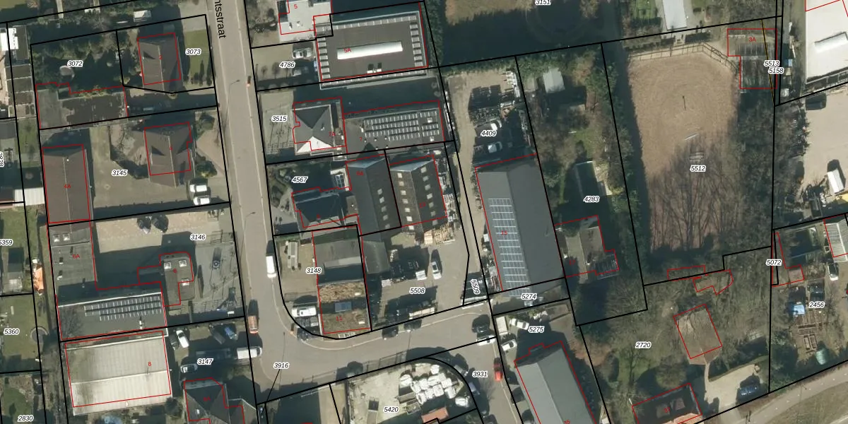 Gebruik de zoekbalk of klik op een perceel voor informatie over de adressen binnen dit perceel.