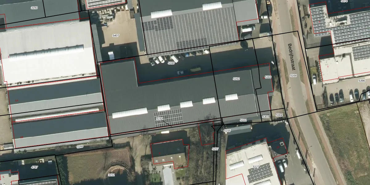 Het perceel waarop Bedrijfsstraat 22-A staat heeft een oppervlakte van 2430 m². Dit is een zeer groot perceel. De perceeloppervlakte wordt geregistreerd door het Kadaster. Gedetailleerde informatie over de maten van dit perceel kunt u vinden in het rapport Kadastrale kaart met maatvoering van Bedrijfsstraat 22-A.