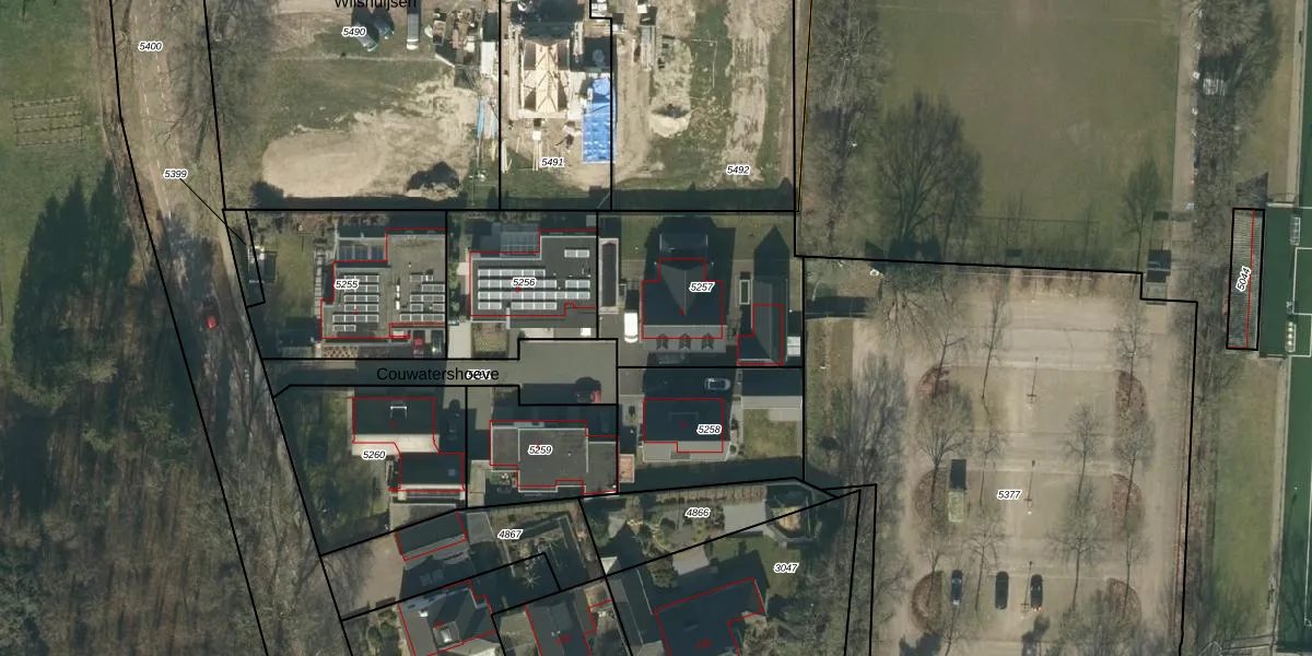 Couwatershoeve 5 is gelegen op kadastraal perceel NLD03B5257. Deze kadastrale aanduiding is uniek en wordt gebruikt door het Kadaster om eigendomsrechten en andere zakelijke rechten vast te leggen. Het perceel maakt onderdeel uit van de kadastrale gemeente Nuland.