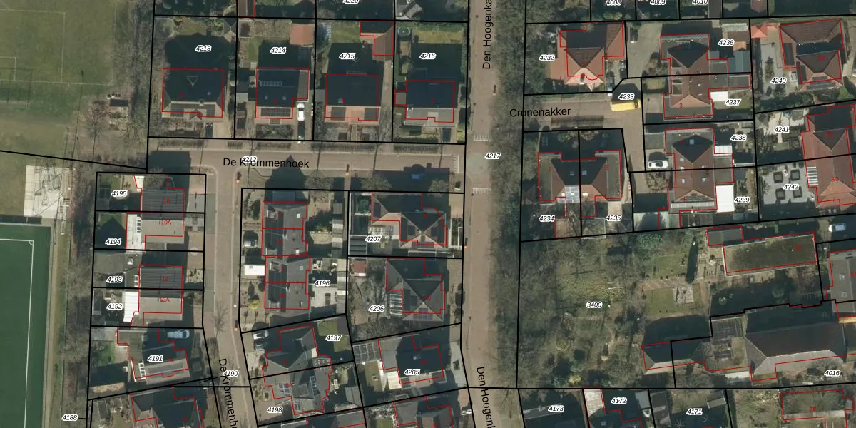 Gebruik de zoekbalk of klik op een perceel voor informatie over de adressen binnen dit perceel.